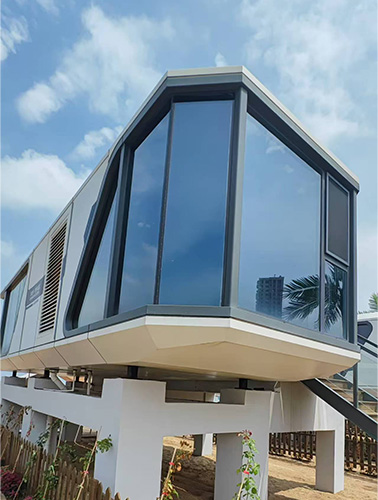 在自然風(fēng)景區(qū)中,太空艙移動(dòng)房屋可以為游客提供一個(gè)私密、安靜的住宿空間,最具特色的是全景天窗設(shè)計(jì),可以讓入住者體驗(yàn)睡在星空下的真實(shí)感受,滿足大家身心融入大自然的心理需求,為游客提供舒適的住宿服務(wù)。