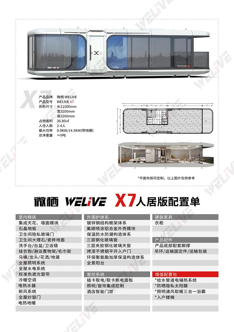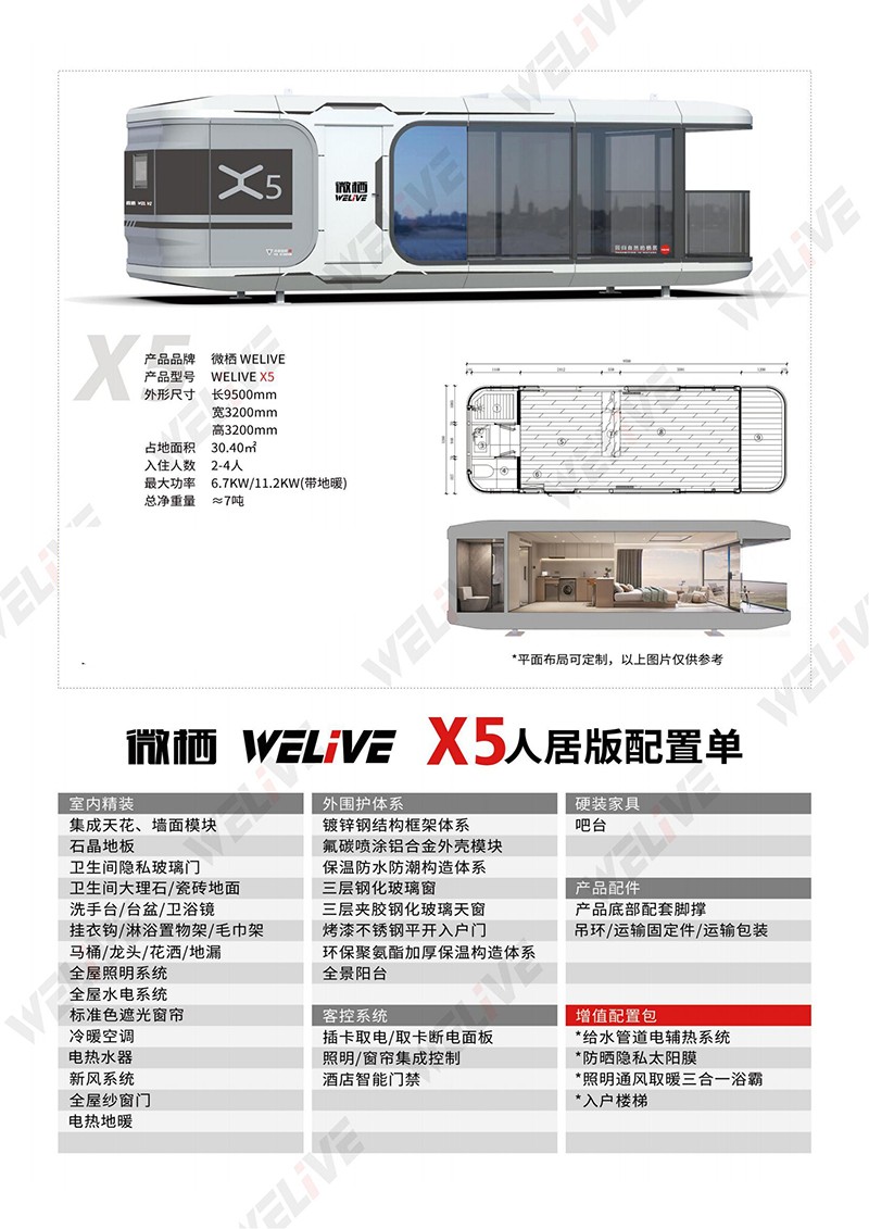 在主題公園中,太空艙移動房屋可以作為特殊的住宿設施,里面臥室、盥洗間、淋浴間、衛(wèi)生間、活動間精巧布置,門窗、燈飾、窗簾、電視均為智能化聲控。透過玻璃鋼幕墻室外風景一覽無余,為游客提供獨特的住宿體驗,讓他們感受到與眾不同的旅行樂趣。